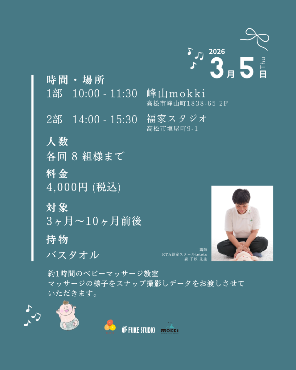 2026年3月5日(木)に『ベビーマッサージ教室-スナップフォト付-』のイベントを行います!!